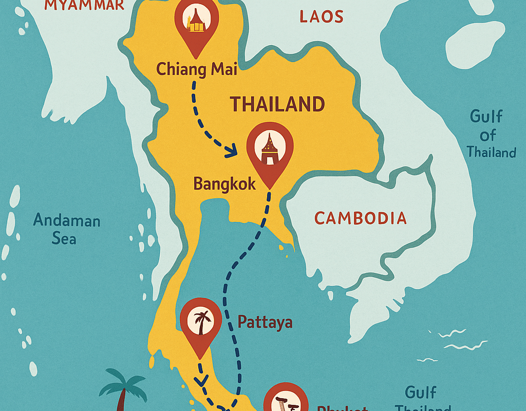 Thailand Tourist Map 2025 – Top Places to Visit with Route Guide